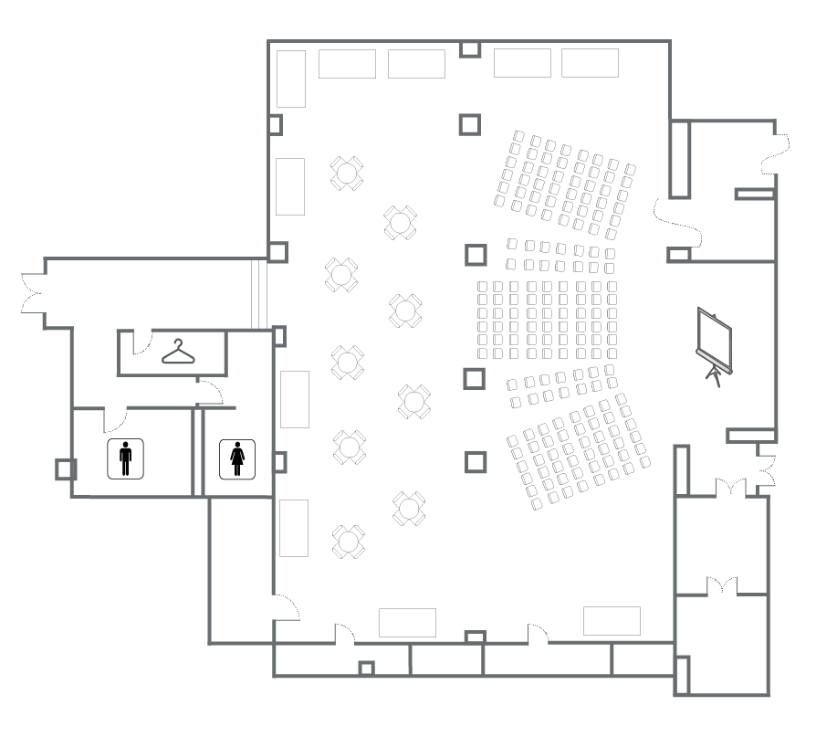 Классический интерьер зала Континенталь сочетает тёплые светлые тона и декоративные элементы из темного дерева. Ковровое покрытие, а также хрустальные люстры, неизменно придающие торжественности – всё это делает зал идеальным местом для организации самых изысканных событий. Элегантный и сдержанный интерьер создаст приятную атмосферу для любого мероприятия или праздника – от свадебного торжества до деловой встречи или конференции. В зале предусмотрено место под сцену, зона для регистрации, отдельные санузлы, оборудованы гардероб и гримерная комната.